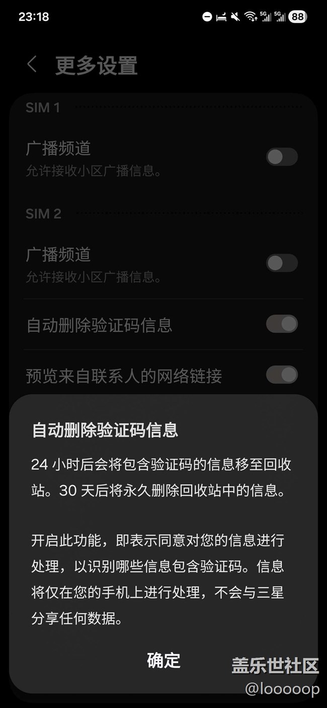 one ui8设置自动删除验证码短信功能问题 图片