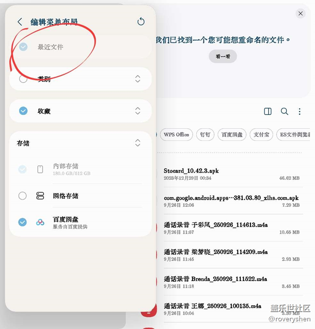 我的文件APP能否提供关闭“最近文件”选项 新帖 图片