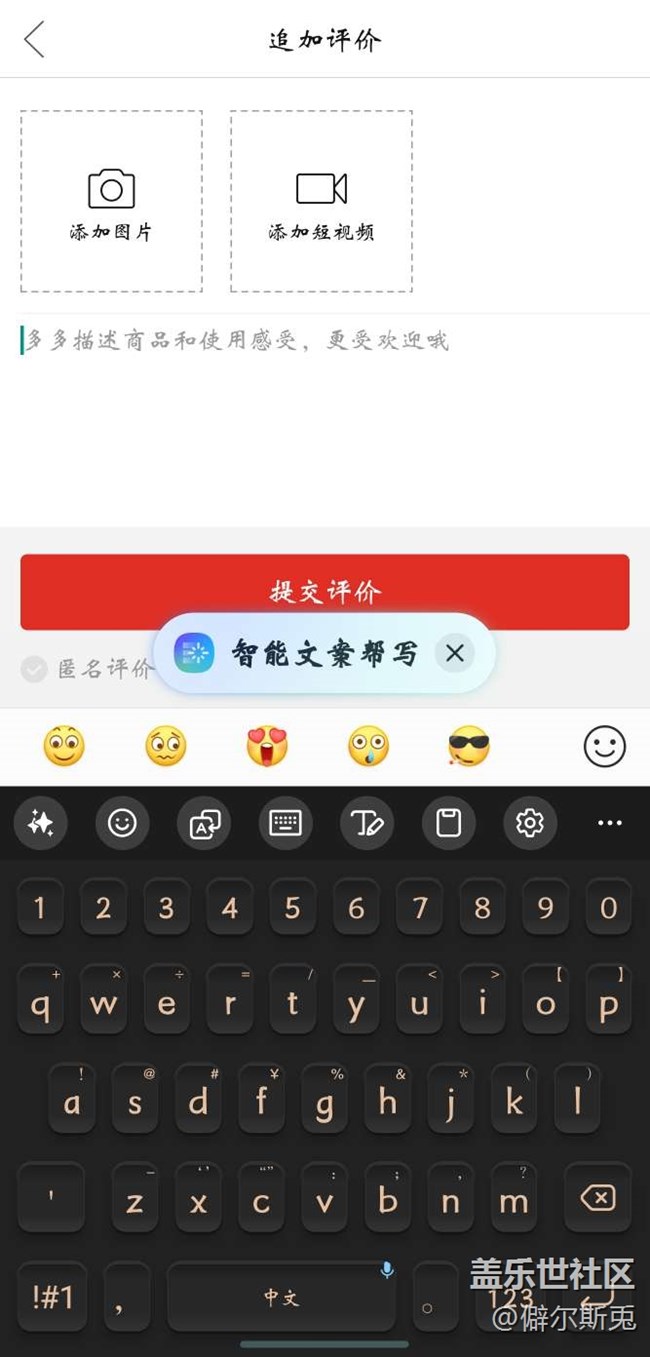 智能帮写评价,主流购物APP都支持,在商品评价页面就能选择,差评,中评,好评都支持,系统会根据商品展示图片和自己上传的实拍图片生成评价,对于经常网购又不喜欢码字写评价的懒人来说简直不要太实用