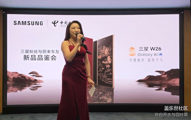 周末参加了三星和蔚来汽车举办的 W26 品鉴活动。此次品鉴会展示的三星W26是三星电子与中国电信携手推出的超高端智能手机。它在很多方面都有出色表现,比如设计上,整机重量仅215克,展开厚度仅4.2毫米,还采用了升级版增强型装甲铝材质边框以及康宁®大猩猩®玻璃陶瓷2的外屏盖板与背板,并有“玄曜黑”“丹曦红”两款全新配色,尽显优雅与尊贵。影像方面,搭载了由2亿像素广角主摄、1200万像素超广角镜头与1000万像素长焦镜头组成的三摄系统,融合增强型超视觉引擎,能精准还原光影细节。性能上,配备骁龙8至尊版移动平台(for Galaxy),还支持天通卫星通信,即使在户外无地面网络覆盖的环境也能与外界保持畅联。