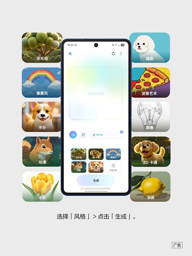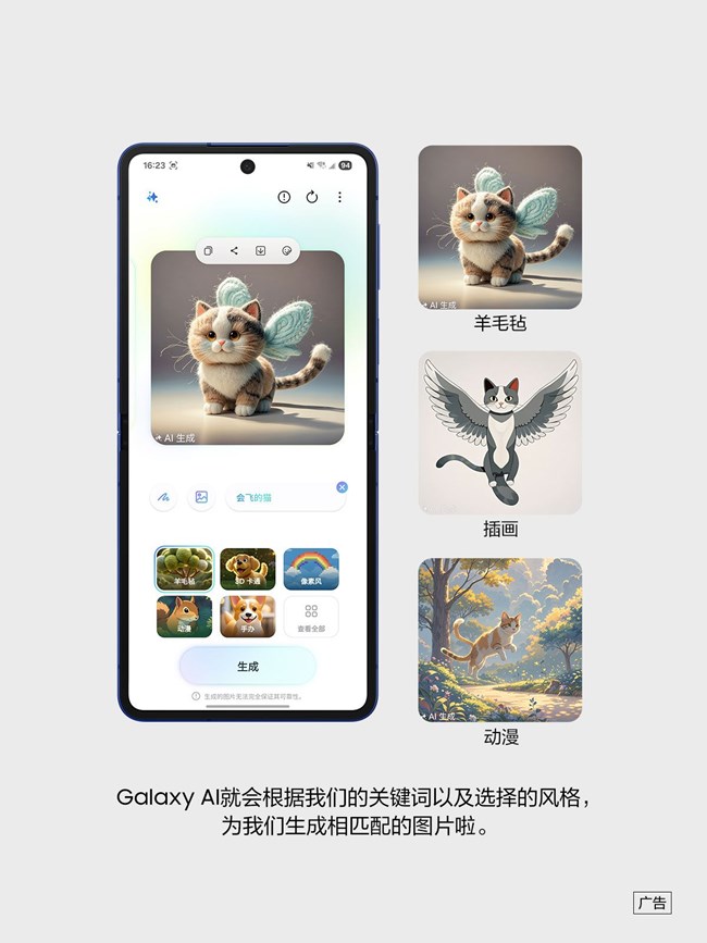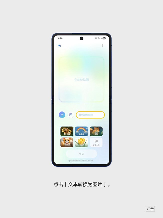 Galaxy ZFlip7的绘图助手中的文生图功能,