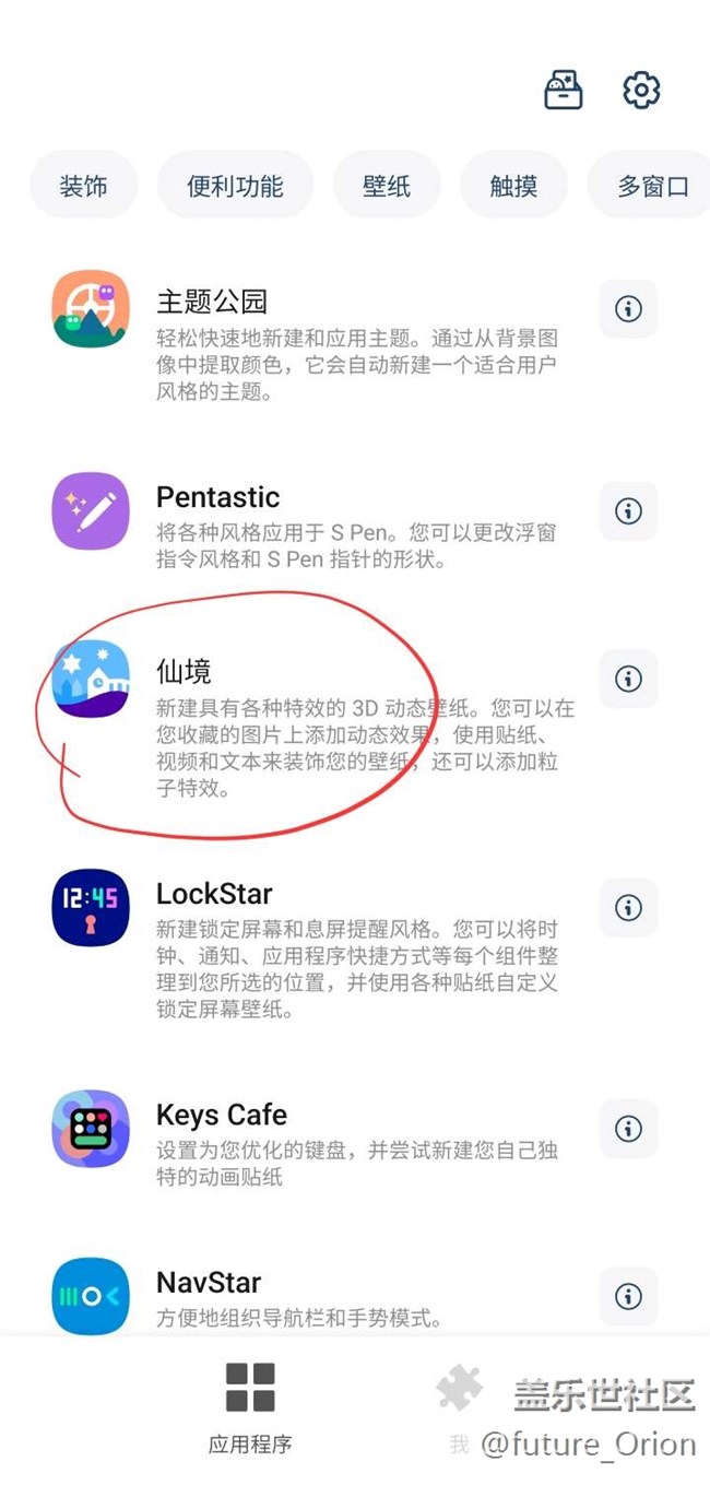 在Good Lock里我们找到,“仙境”App里有各种特效的动态壁纸,当然你也可以自己下载素材来定制动态壁纸
