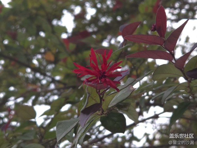 属于秋天的红色,点缀在叶片上,点缀着花朵上,像小姑娘害羞地红了脸蛋。