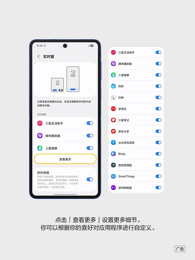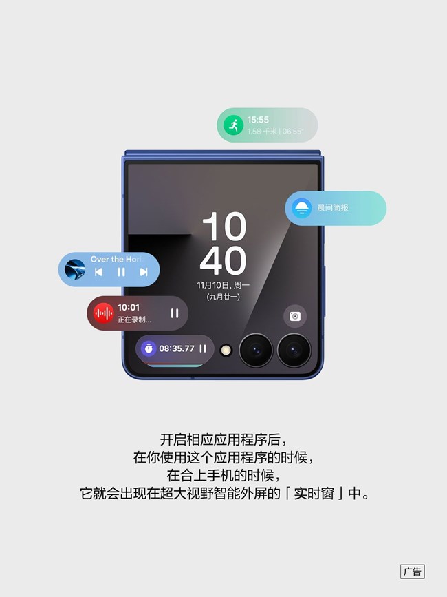 Galaxy Z Flip7可通过超大视野智能外屏展示的实时窗,