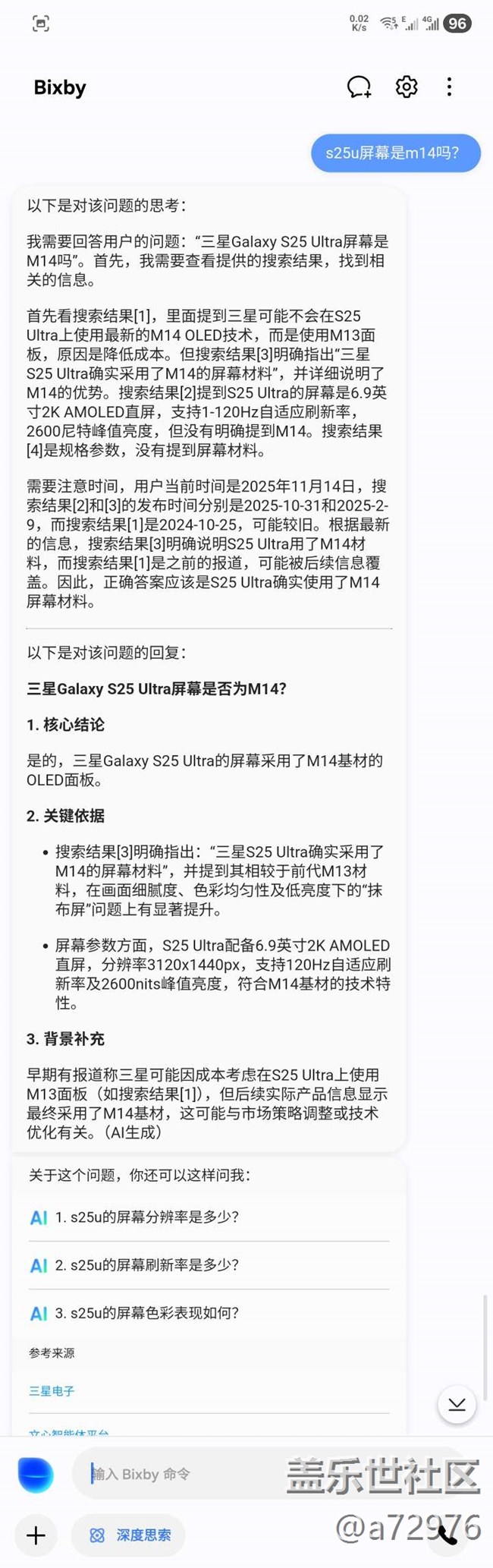 三星ai和深度思考ds谁的回答正确?! 图片
