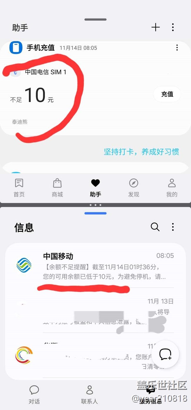 三星生活助手获取话费运营商有误 图片