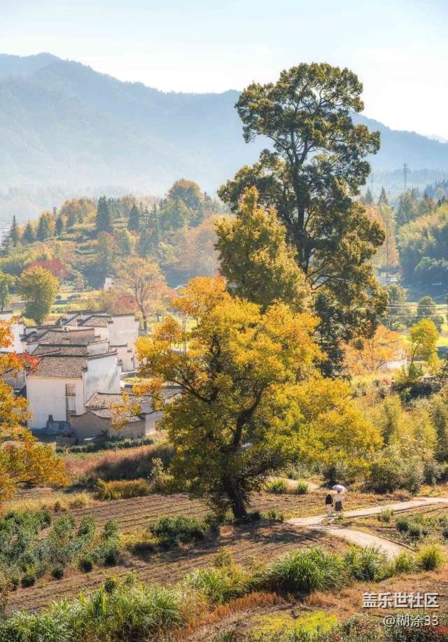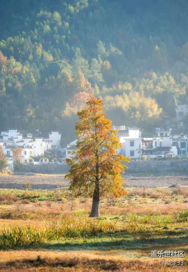 皖南的秋,是一首色彩斑斓的田园诗。山间的孤树染上金黄,在晨雾中宛如遗世独立的精灵,游人驻足仰望,似在与自然进行一场无声的对话。