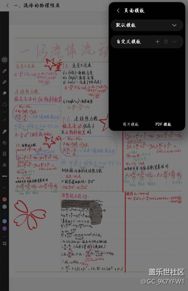 三星笔记里面,页面设置板块没有PDF模板选项卡 图片