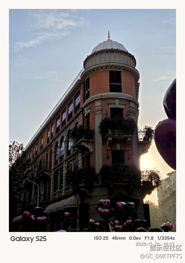 在酋长的推荐下第一次使用新机型独占的水印功能,效果很惊艳,不仅是水印,也是一个调色滤镜。在下午大光比场景下,想较标准模式,对高光和阴影的把控很好,有较明显的对比反差,展现出光影立体感,也为我省去了一大部分后期工作。