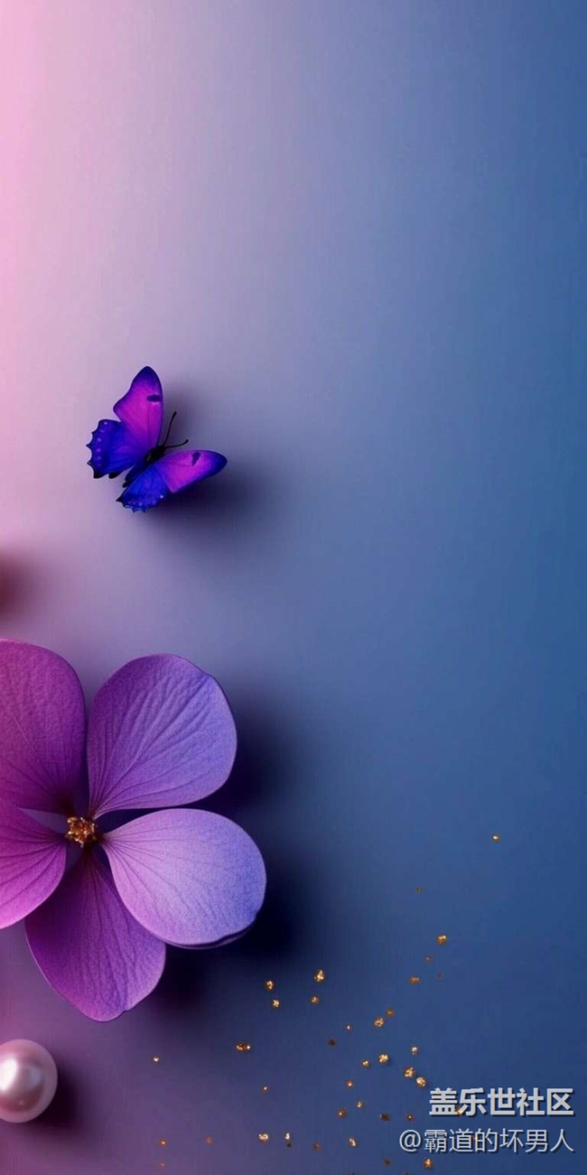 紫色花朵与蝴蝶珍珠装饰 图片