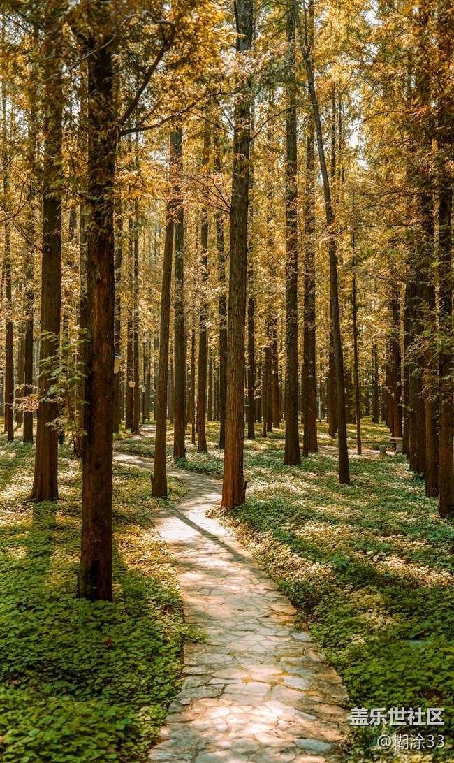 再往深去是杉树林,笔直的干撑起一片荫凉,砖径弯向林深处,光影在路面织出细碎的纹。风过时叶声沙沙,混着远处的桨声,把秋的慢,揉进每一步里。