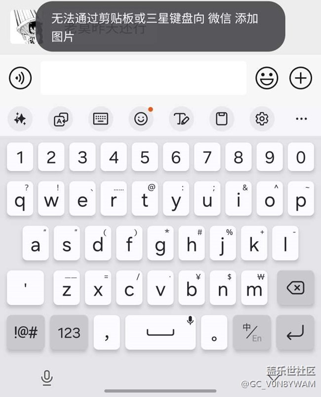 无法通过剪切板或三星键盘向微信添加图片。 图片