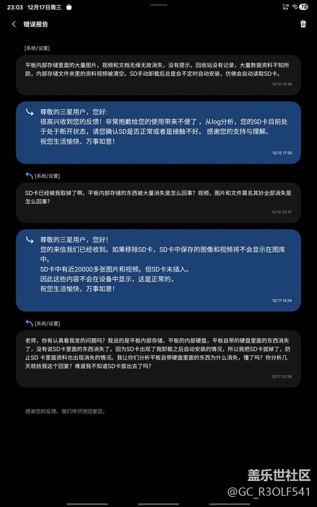 平板内部硬盘里的资料无故消失,三星专家就这么分析问题? 图片