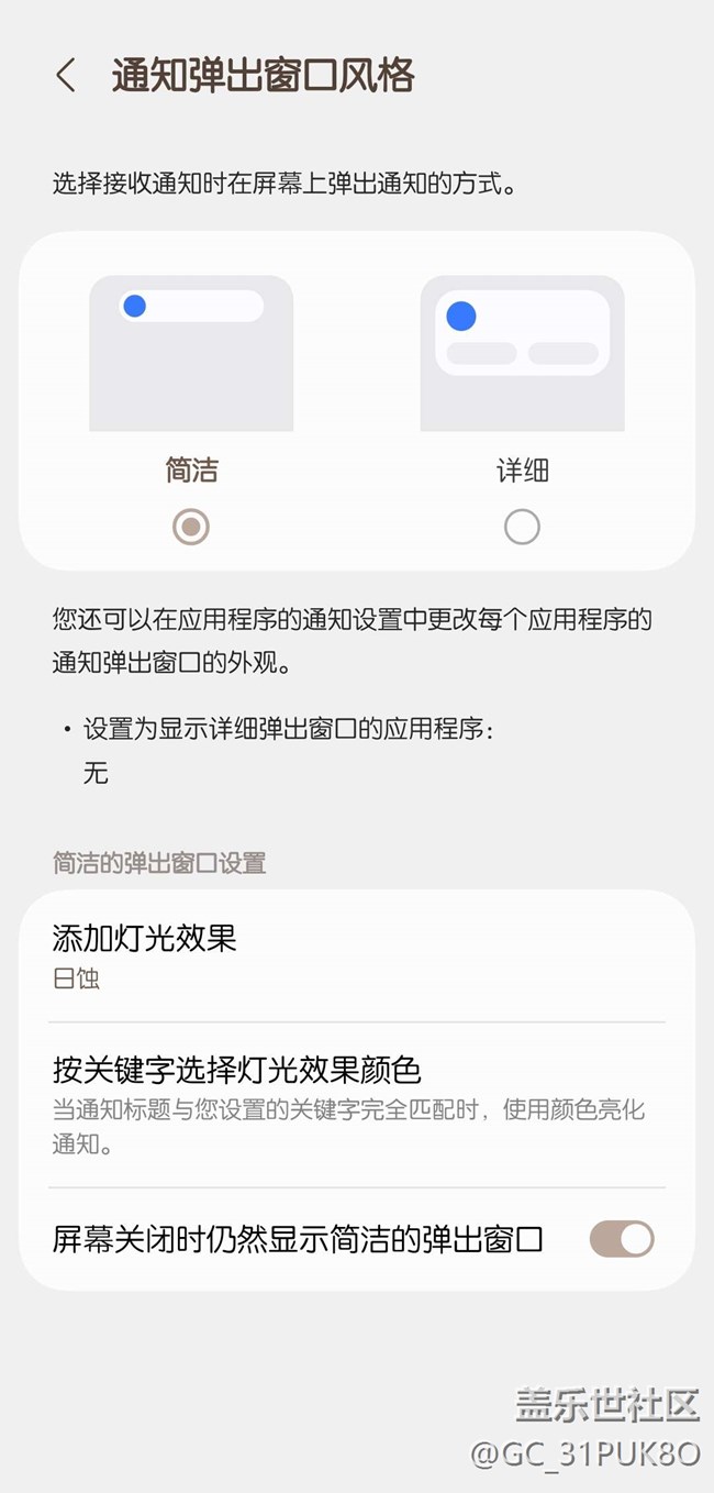 选择简洁窗口,消息就只有一行,只知道来消息了但是看不到完整内容,非得打开屏幕点开应用去查看,增加了不必要的操作,太不方便。可是如果选择详细通知窗口会怎么样呢?亮屏用的时候能看到弹出窗口,而息屏状态比如放在桌子上就彻底不点亮不弹出窗口了!虽然设置了息屏仍然显示,但是没有用!只有窗口设置简洁再打开息屏仍显示简洁窗口才显示。手机看不到新消息不就是块砖头吗?窗口风格详设成详细,息屏也能显示窗口,随时都能看到完整通知,这很难吗?亮屏息屏都可以选择详细或简洁,让功能完整很难吗?好歹亮屏让我看到来新消息了,这很难吗?为什么只能二选一?