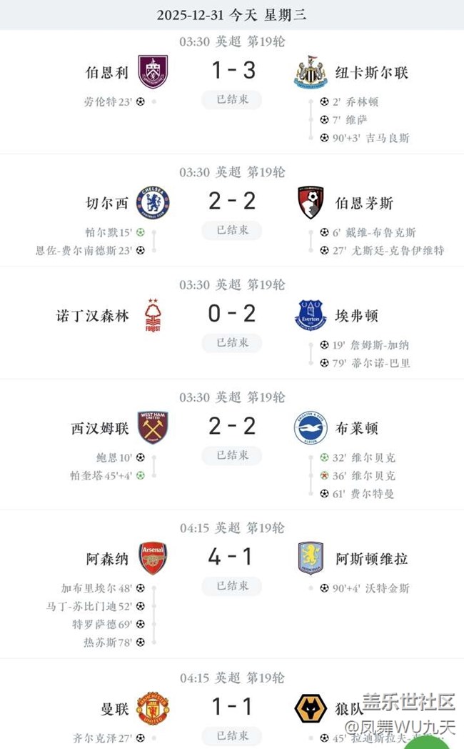 帖子标题: 【英超】今天凌晨的几场战报结果