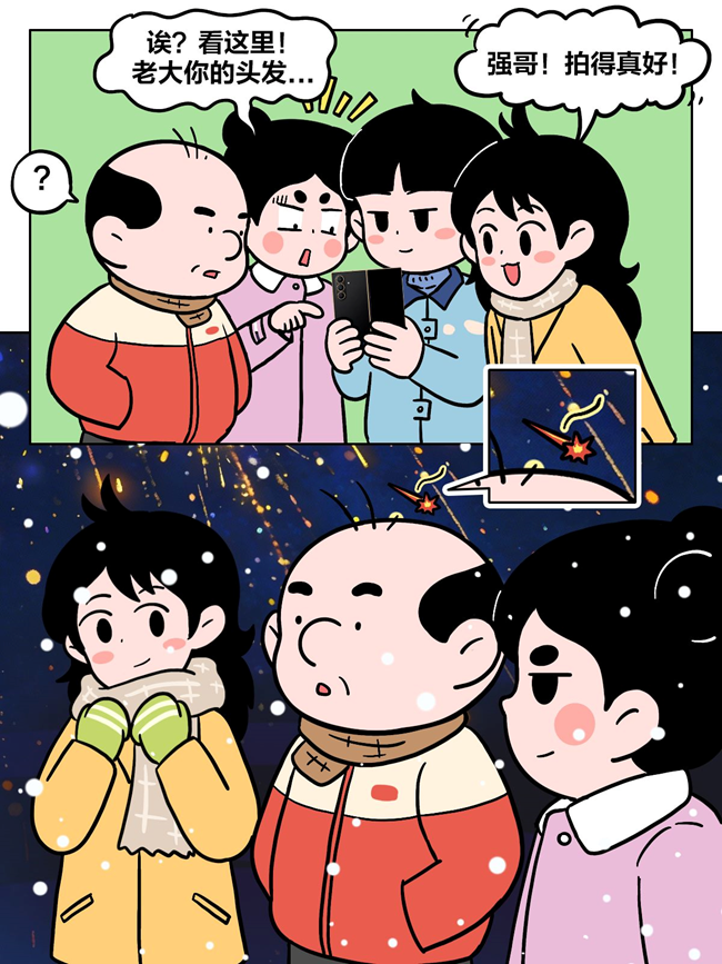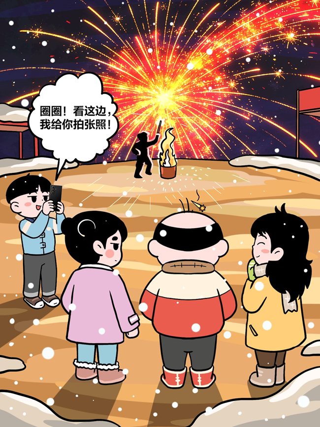 消食散步时没想到雪夜撞见打铁花,大家都拍不到清楚的照片。