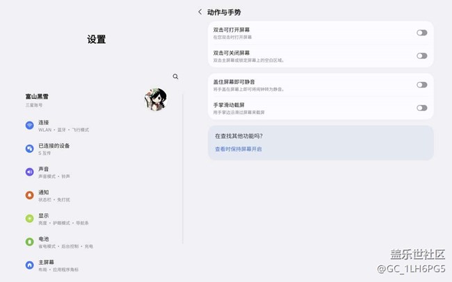 tabs10fe,抬起自动亮屏无法关闭,没有对应选项 图片