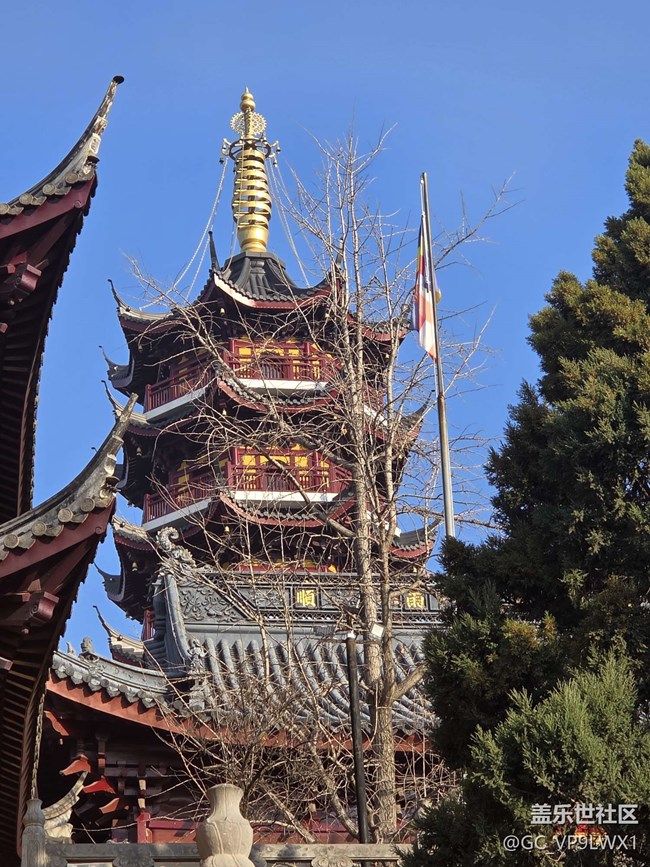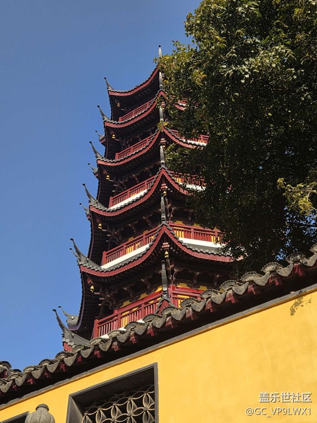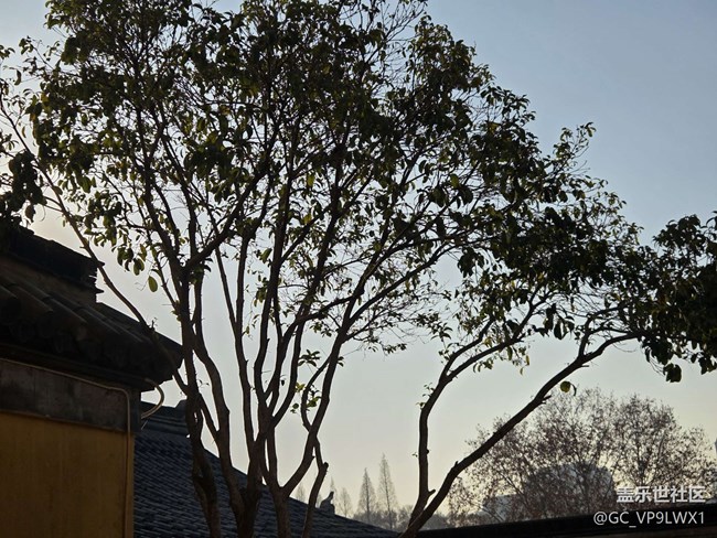 古寺的檐角翘着冬日的暖阳,青瓦叠着岁月的纹路,红墙旁的树影疏疏落落。