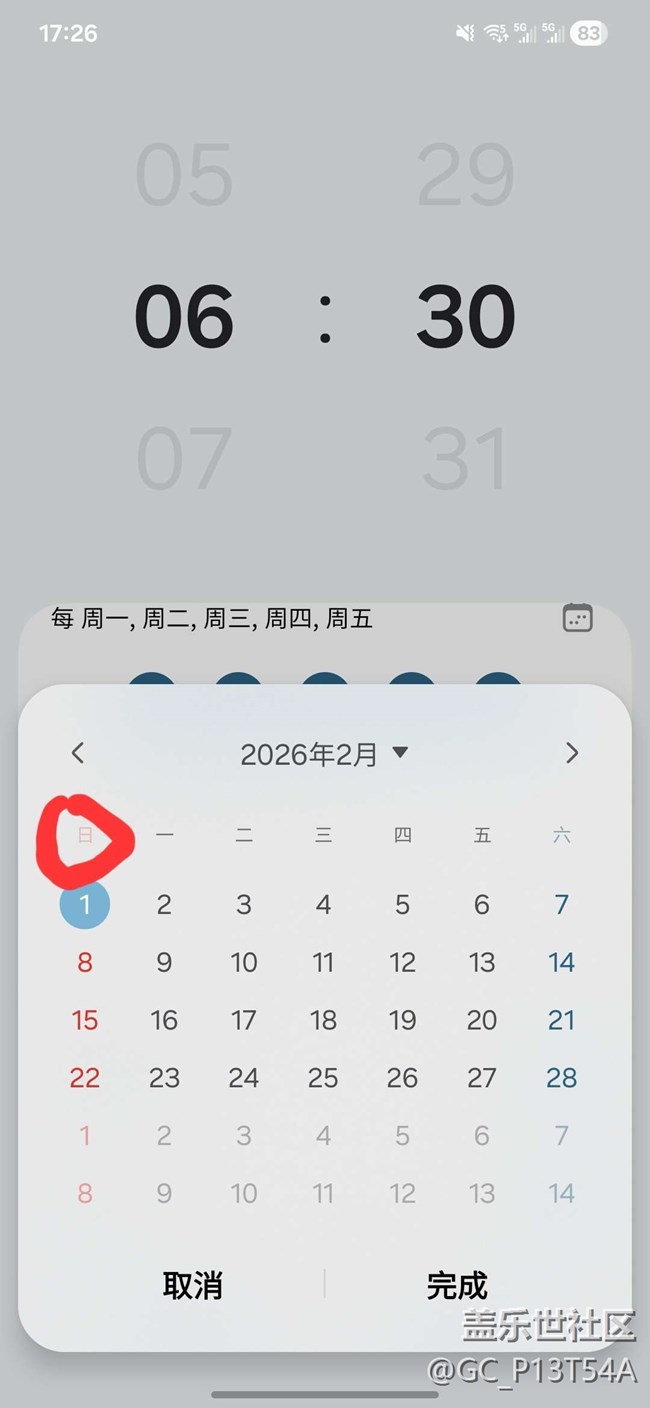 日历设置了每周第一天为“星期一”,闹钟里日历不能同步 图片
