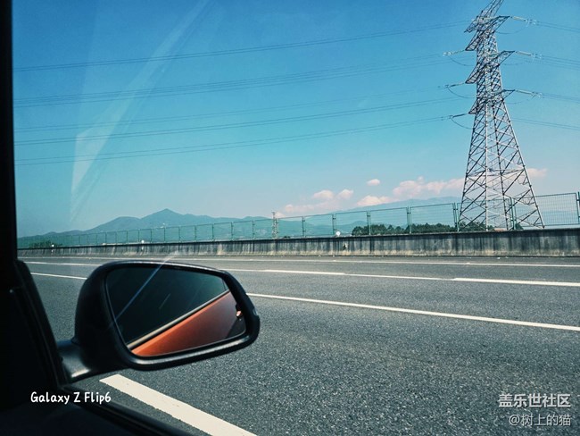 空旷的马路,加上倒后镜里的一撇,是我飞驰的时分。