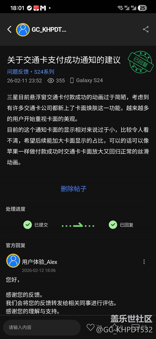 2.关于交通卡悬浮窗动画改进的建议,请问评估后是否采纳?如采纳是否能在下一个版本进行推送?