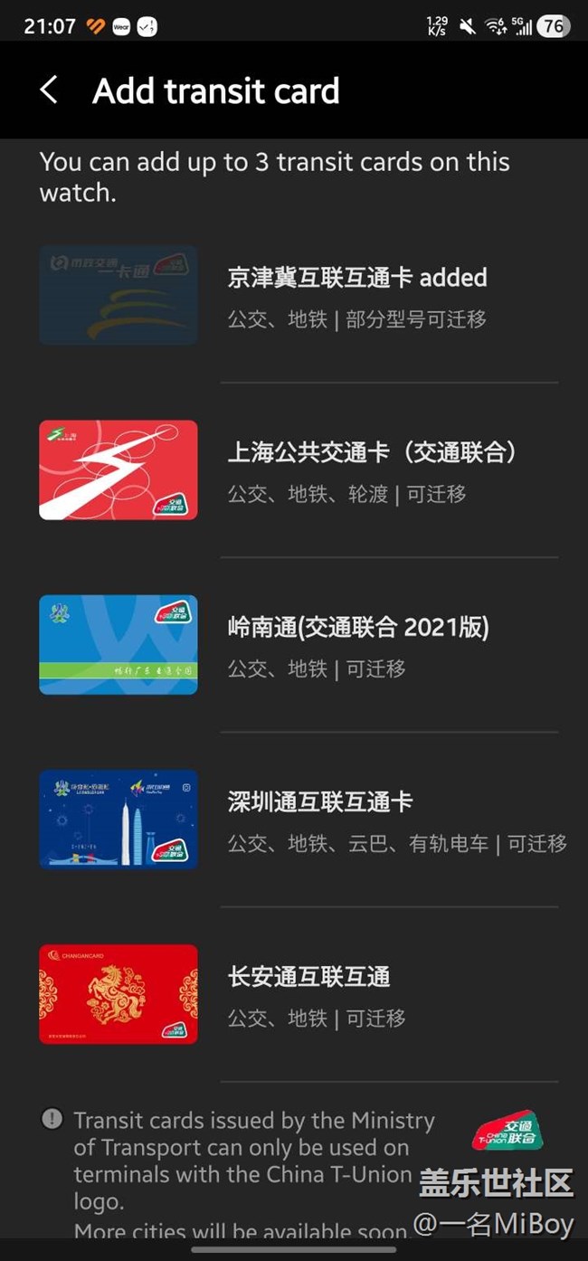 帖子标题: Watch8仍无泉城通公交卡