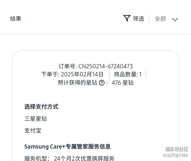 帖子名称: 三星商城购买了care+,为什么看不到订单