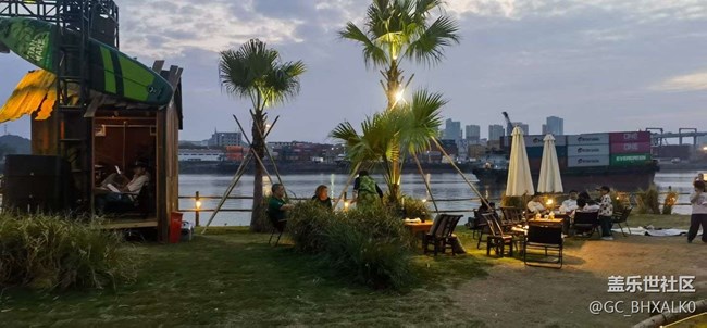 吹着徐徐的江风,静静地欣赏落日的余晖!
