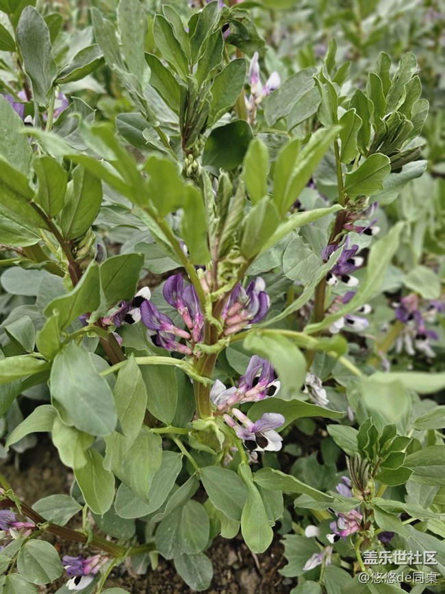 更惊喜的是偶遇了开花的蚕豆!平时光顾着吃,原来它开出的紫白色小花这么精致可爱,黑色的斑点像画上去的眼睛一样。