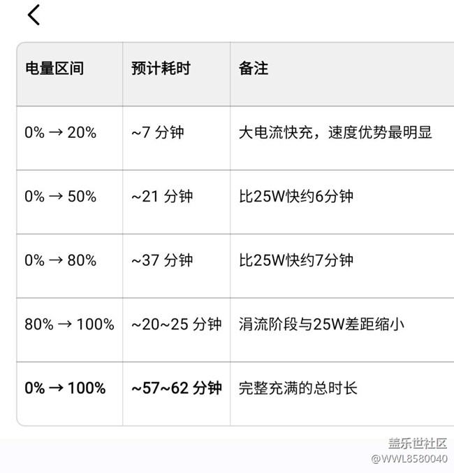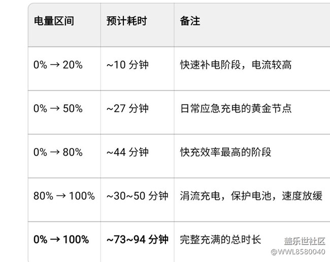 另一项测试则显示45W充电器最快可在57分钟内充满。这些差异主要源于测试环境、电池初始状态和充电器版本等因素。