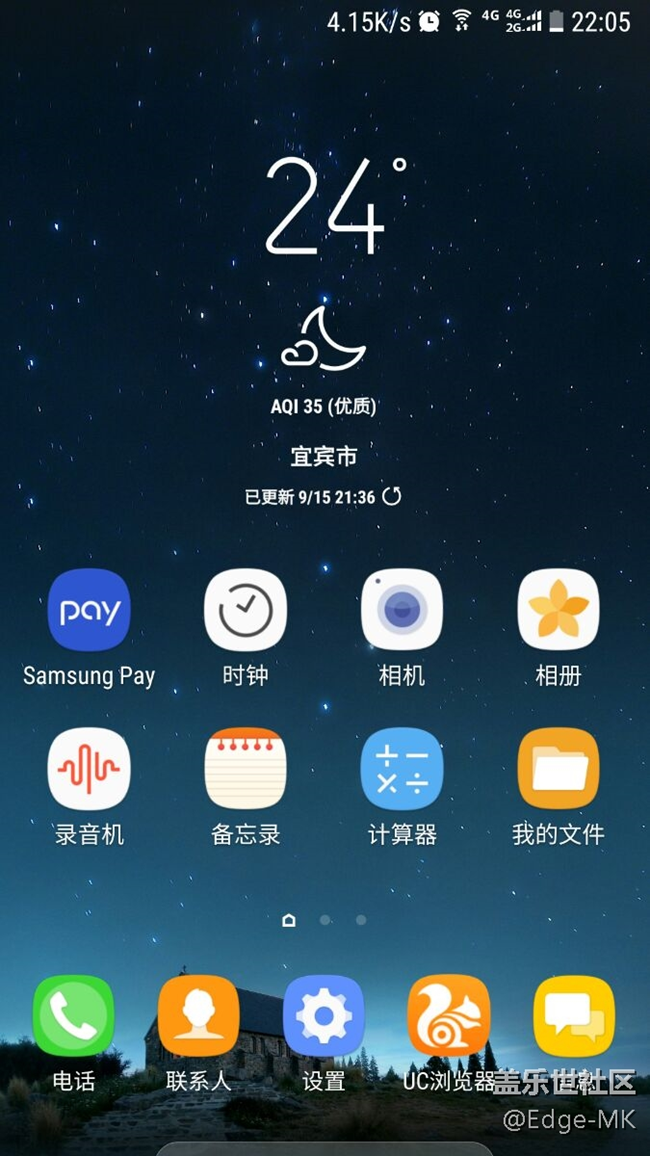今天总算安装了传说中的s8天气app,然后把壁纸换了,s7e自带壁纸丑哭了,不适合搭配天气组建。安装过程还算顺利。