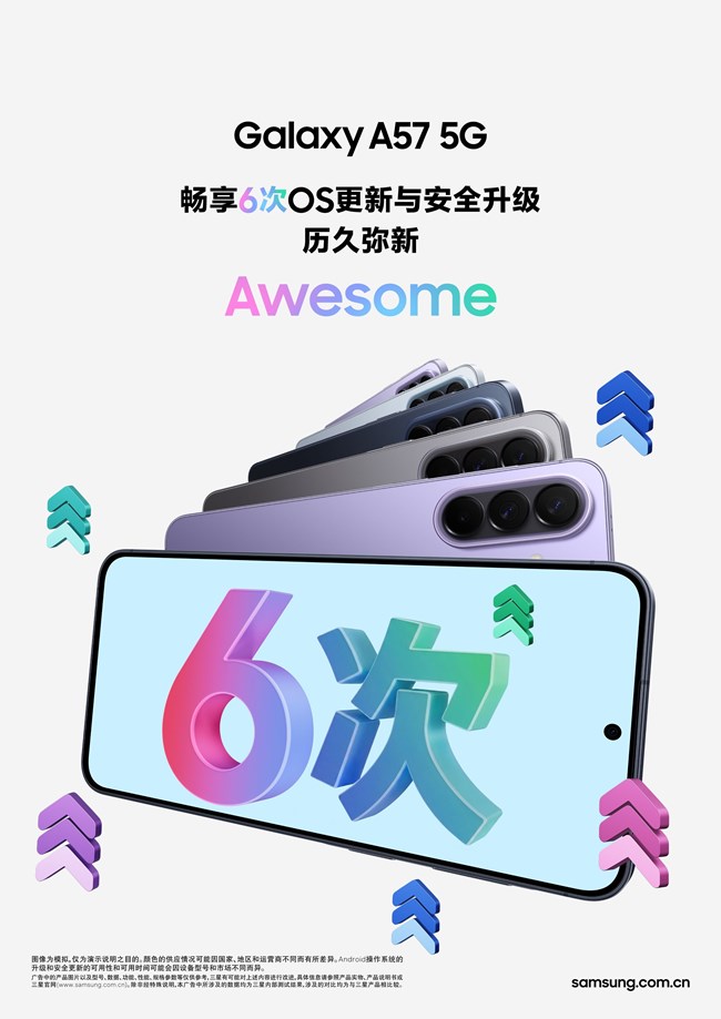 Galaxy A57 5G,支持6 次 OS 更新 + 6年安全升级,用得久更用得爽!