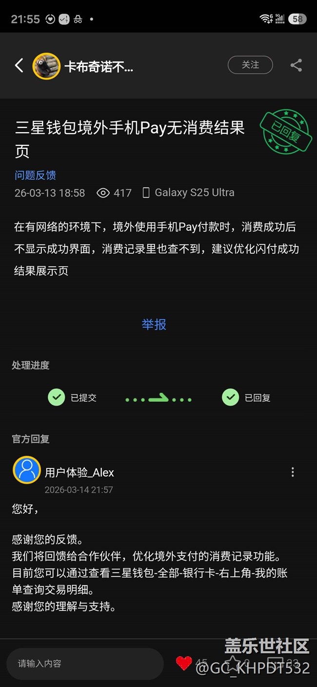 咨询三星钱包何时解决账单优惠信息展示与境外消费结果显示 图片