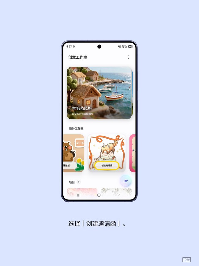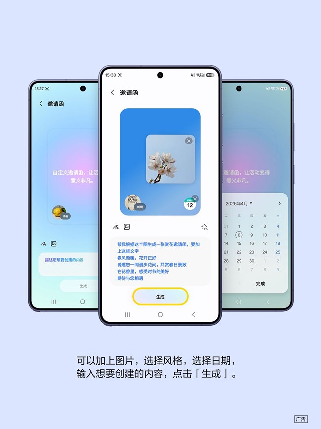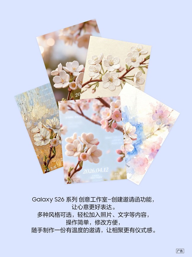 Galaxy S26 系列创意工作室一创建邀请函功能,
