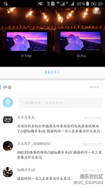 优酷测评上7e与苹果6p对比时屏幕为啥一直在闪 图片