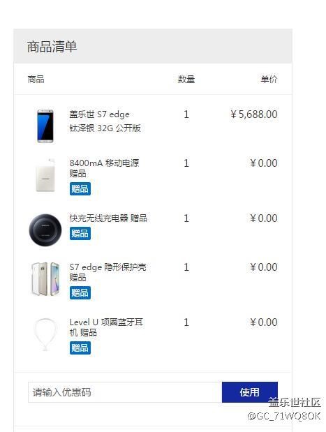 各位大虾!在官网预定S7e如果这里显示这样的是不是还有赠品的?