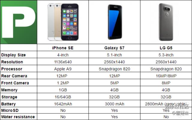 来自三星的 Galaxy S7 和来自 LG 的 G5 无疑是目前最出色的 Android 旗舰智能手机了,它们与 iPhone 之间会有什么的差距?先来看看一张参数对比图。