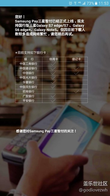 【讨论】好不容易可以用Samsung pay了,一直是这个情况 图片