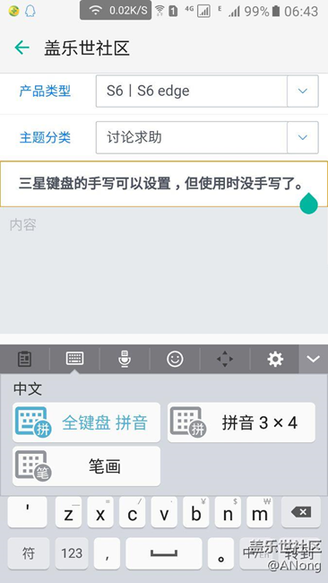 三星键盘的手写可以设置,但使用时没手写了。 图片