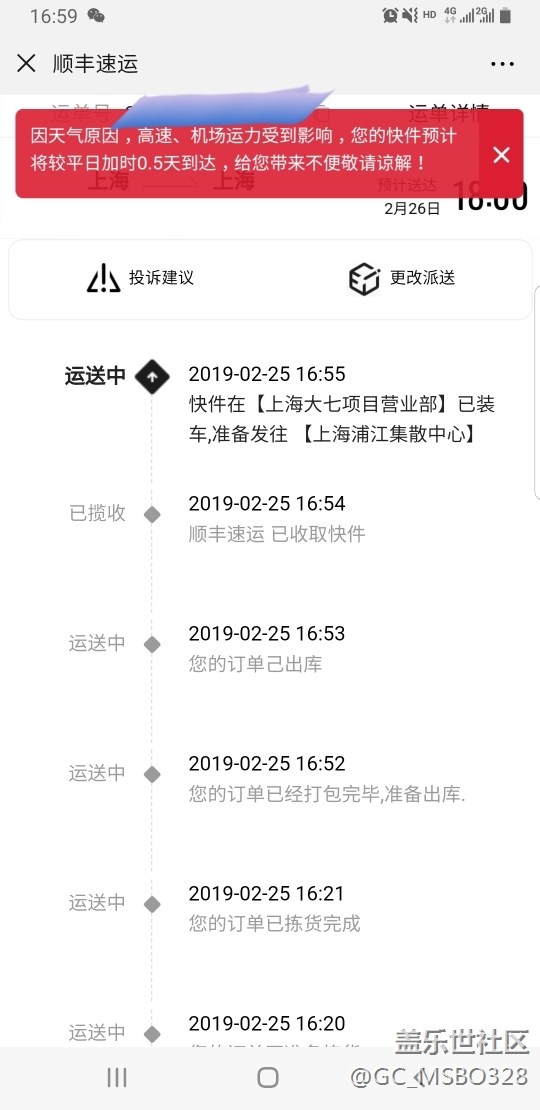 上海表示已发货,预计送达时间明天晚上六点。 图片
