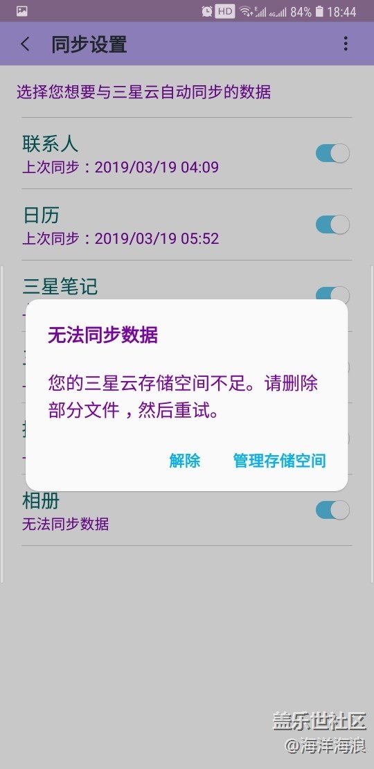 三星同步总提示我云空间不足,可我还剩14个g呢 图片