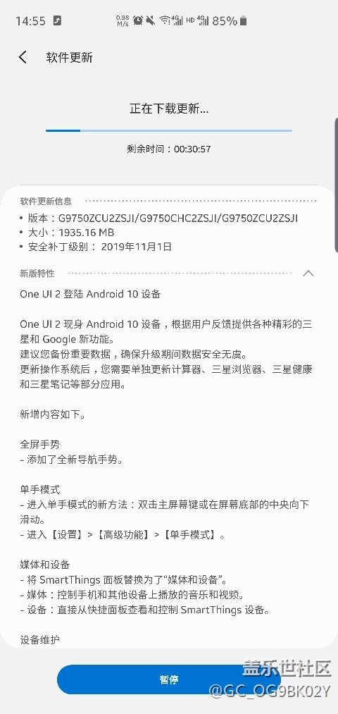 帖子标题: OneUI2.0已经成功申请并下载中