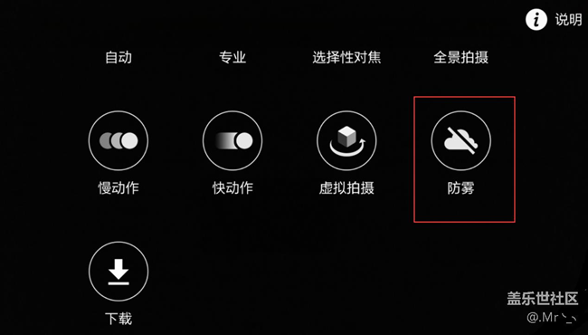 拍照防雾模式/美食模式