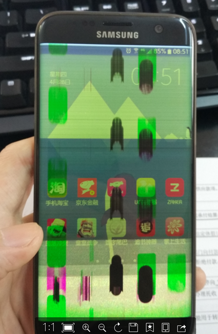 哎 s7edge才用了一个多月就花屏了