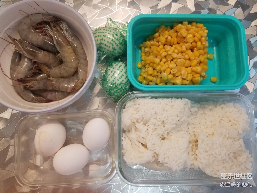 海虾和咸鸭蛋是关键,必须要有,玉米可以换成青豆或者胡萝卜粒,所有食材的量随意添加