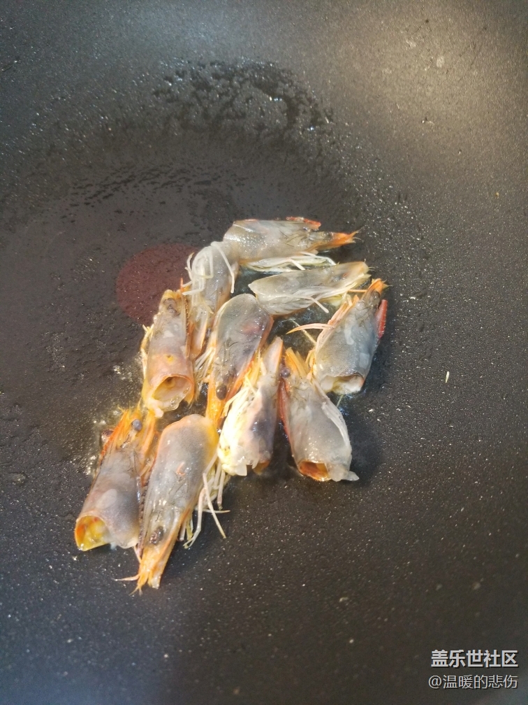 锅中放油,煸虾头,煸出虾油后,虾头捞出,建议多放点油,炒出来会更香,我的油放少了