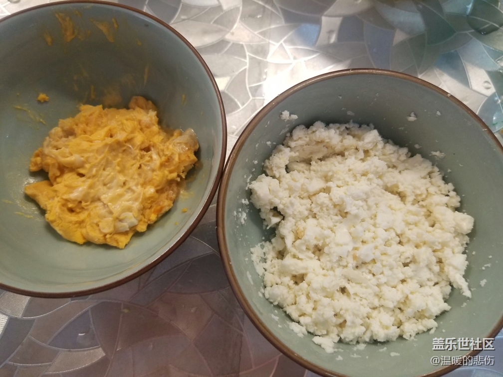 咸鸭蛋的蛋黄和蛋白分开,碾碎备用