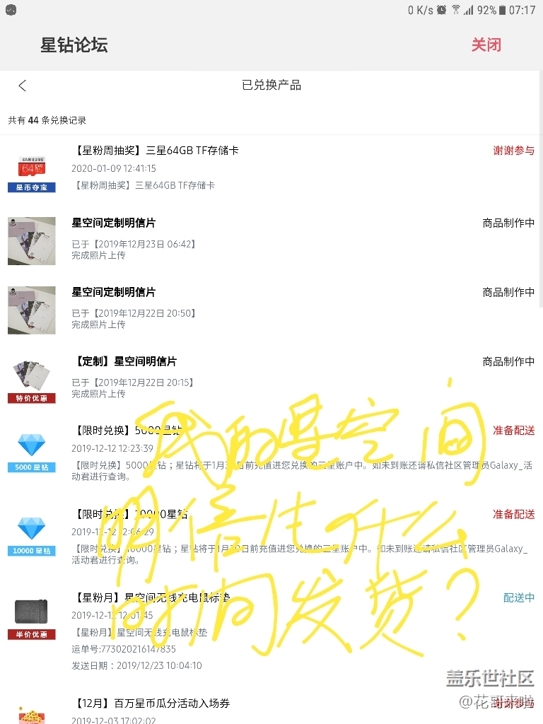 帖子名称 我去年定制的星空间明信片什么时间发货?