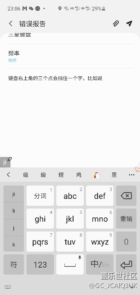 三星键盘字体遮挡问题 图片