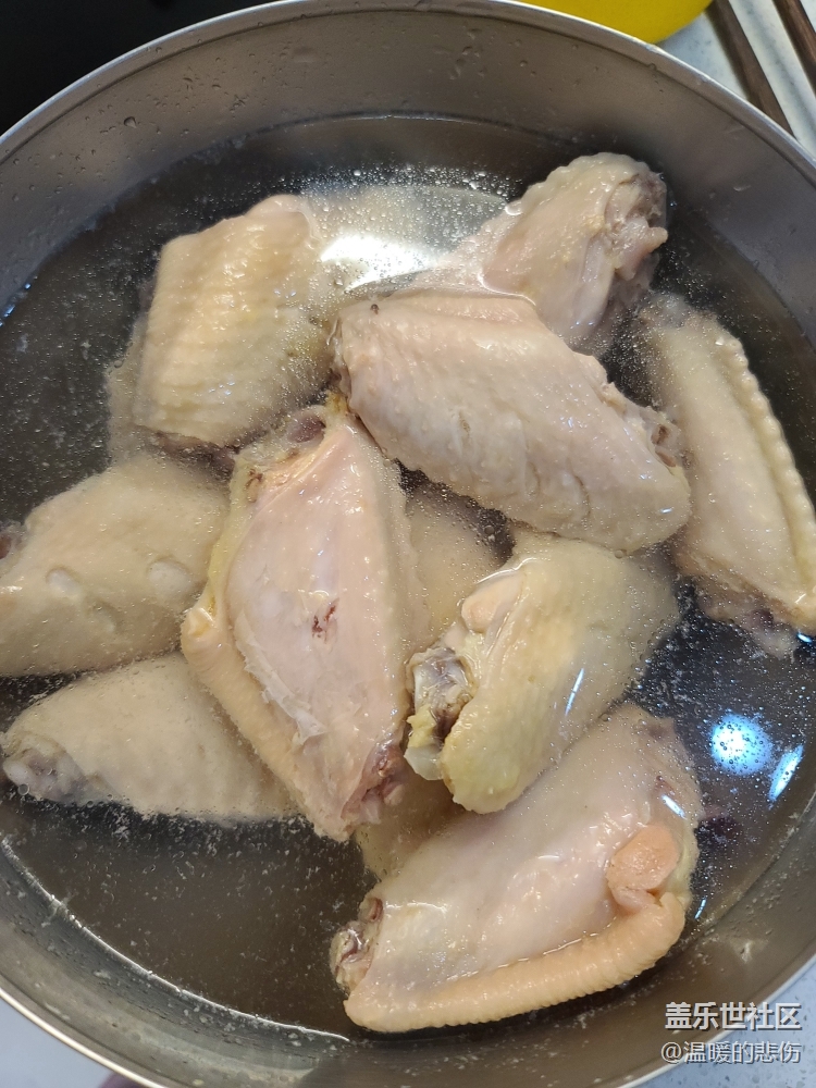 八角,葱和姜片加水,倒入鸡翅,可以加些料酒去腥,水开捞出